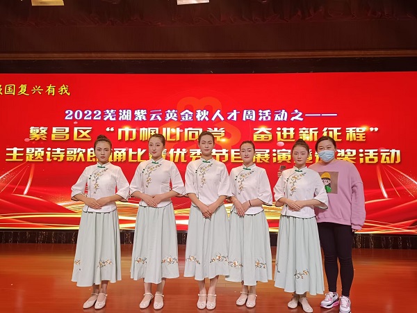 11月9日,繁昌区“巾帼心向党 奋进新征程”主题诗歌朗诵比赛优秀节目展演暨颁奖活动在去图书馆举办。学校茶艺社团辅导教师王琴主动担责,承担活动的礼仪服务工作。