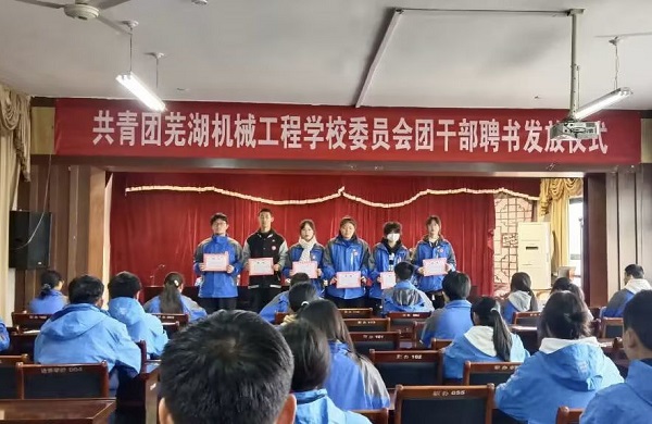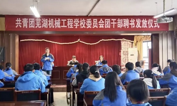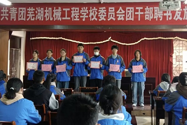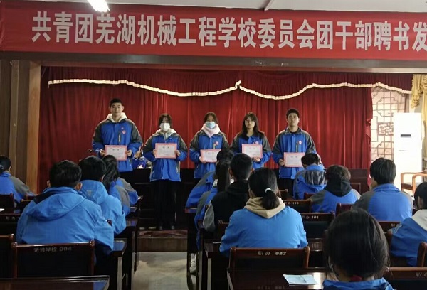 为激励广大团干部的工作效率和热情。11月18日,共青团芜湖机械工程学校委员会第九届团干部聘书颁发仪式在团员活动室举行。团委组织部和班级团支部书记四十余人参加活动,仪式由第九届团委学生副书记陶雯主持。