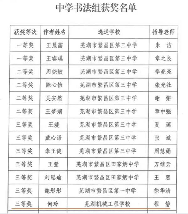 经过区级评委会精心评选芜湖机械工程学校最终获得“优秀组织奖”。