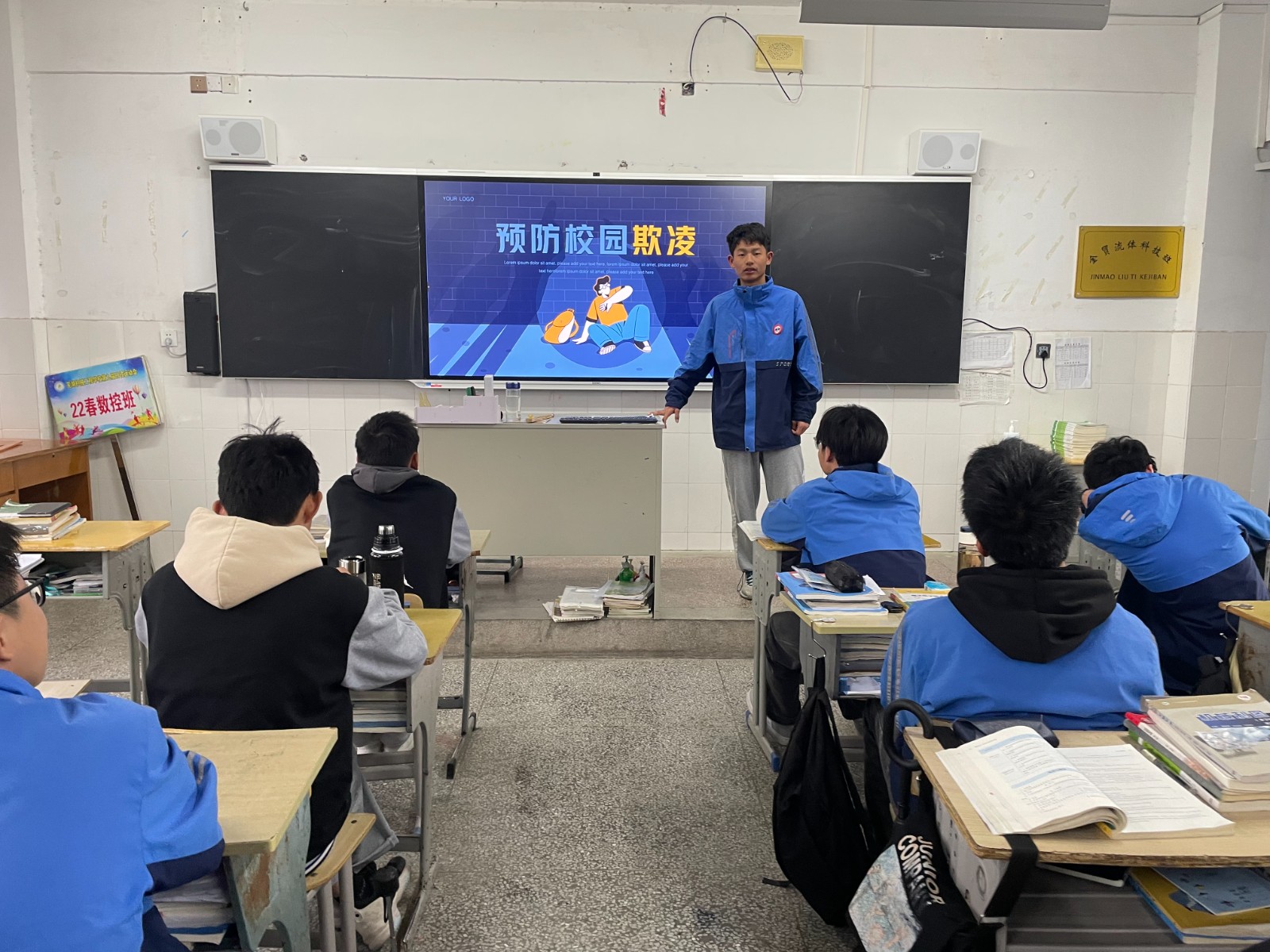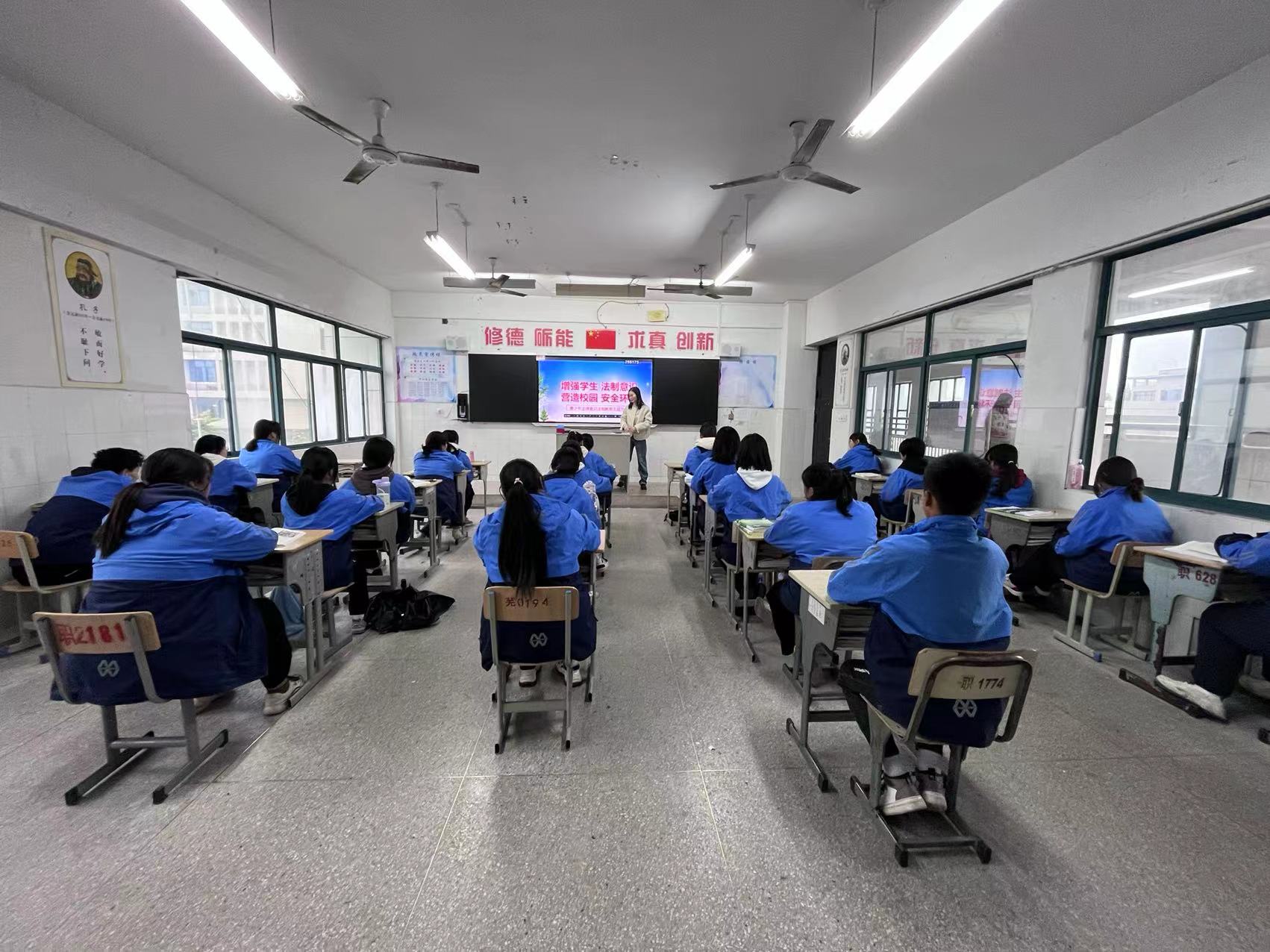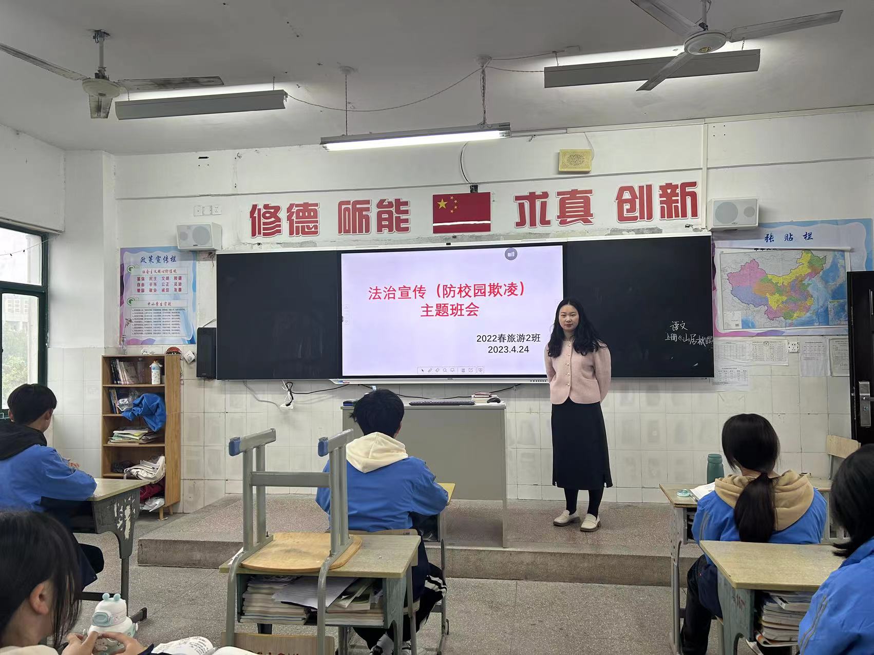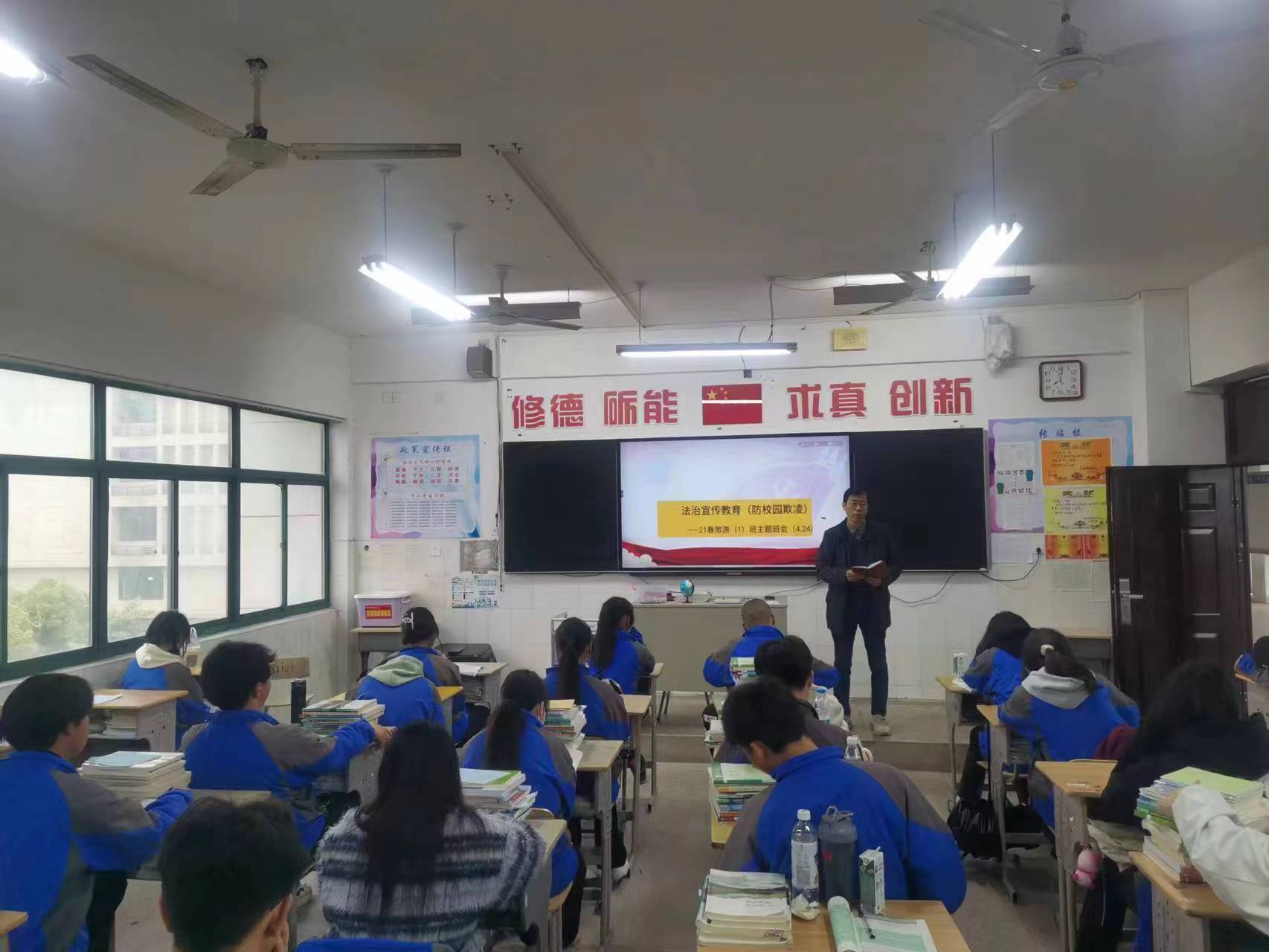 4月24日,星期一,全校各班开展了一堂生动有趣的法治宣传主题教育班会课,加强了《宪法》、《未成年人保护法》、《预防未成年人犯罪法》等与青少年密切相关的法律法规宣传力度,推动我校青少年法制宣传教育深入开展,不断提高广大学生的法律意识和法律素质,预防学生校园欺凌违法犯罪,自觉养成学法守法用法的行为习惯,为建设文明和谐校园营造良好的法治环境。