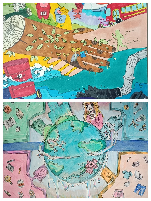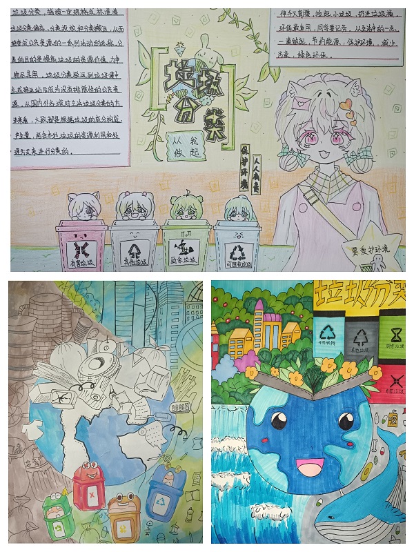 全校34个班级全员参与,绘画比赛中选手们分别从垃圾四分类内容、环保理念方面用图片形象而生动的展现了垃圾分类要求。经过校级评选委员会评选,最终评出10幅作品参与全区评选。
