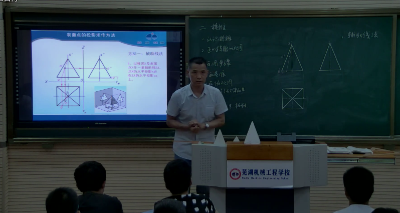 2017年6月2日下午第一节课,芜湖机械工程学校机械组陈孝和老师在录播教室参加了学校组织的集体备课展示活动,展示的课题为专业基础课程《机械制图》中的《棱锥的三视图》。陈老师通过课前的精心准备,课上机智幽默的语言,最大程度地调动了学生参与课堂的积极性,取得了良好的教学效果。