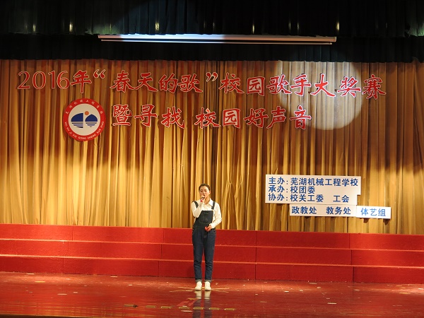 四月迎来希望,四月放飞梦想。在这温馨的季节,在多功能报告厅,芜湖机械工程学校隆重举办“春天的歌”校园歌手大奖赛决赛。