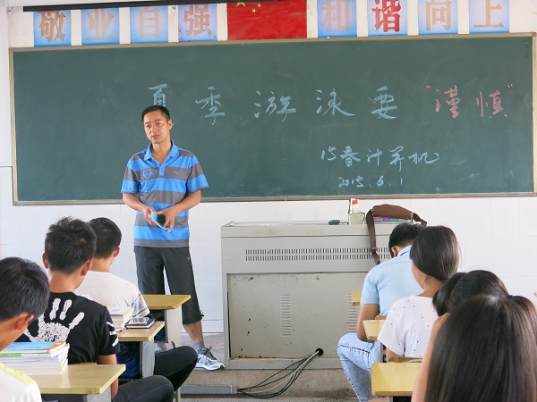宣传教育活动主要包括全校性质的旗下讲话和各班由班主任组织的主题班会活动。班会上,各班级通过各种形式教育学生,班主任通过列举身边的学生溺水事件作为案例,让学生分析其危害性,并且讨论在危险时该如何处理、自救。告诉学生在无监护人管带时不得私自下水游泳;不到设置有“禁止下水游泳”标志的水域游泳;不随便到野外水域游玩等,让学生充分认识到安全的重要性,溺水所带来的后果。