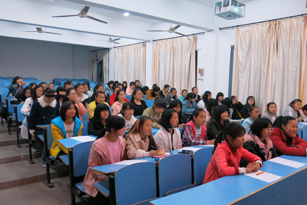 4月12日晚,芜湖机械工程学校由政教处组织2017新入学的所有住校女生在校阶梯教室听由心理咨询师刘智莲主讲的《女生悄悄话》心理健康知识讲座。
