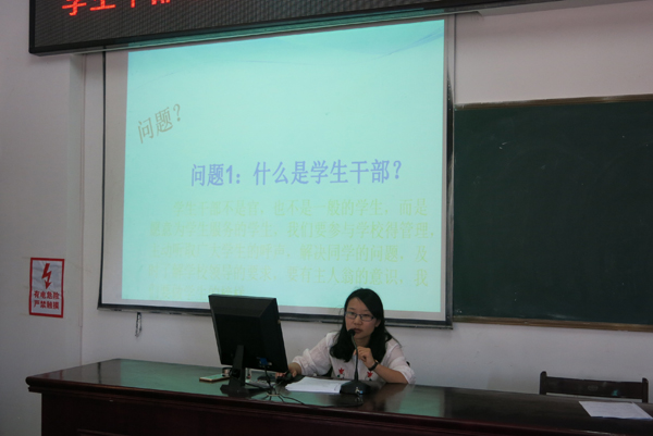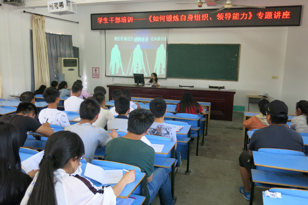 优秀的学生干部必须对集体活动具有出色的组织协调能力,对班级管理具有一定的领导能力。根据学生干部培训计划安排,5月17日下午,芜湖机械工程学校由政教处组织全体学生干部开展“如何锻炼自身组织、领导能力”专题培训活动,由校团委书记蒋丽萍主讲。