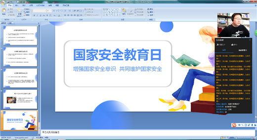 线上主题教育班会课,班主任们通过“芜湖市学校安全教育平台”提供的“全国中小学生国家安全教育”视频及相关资源,利用线上教学平台进行国家安全教育教学,带领学生完成“国家安全知识测试题”,有针对地组织开展学习《国家安全法》《反恐怖主义法》《反间谍法》《网络安全法》等涉国家安全法律法规。同时结合“新冠肺炎疫情防控知识” ,宣传《传染病防治法》等涉公共卫生安全、生物安全法律法规。让学生们学习国家安全相关的法律法规,明确维护国家安全的重要性,在日常生活中能够维护国家安全,不泄露国家秘密,发现间谍、恐怖行为及时举报,同时做好疫情防控维护国家政治安全和社会稳定部署要求。