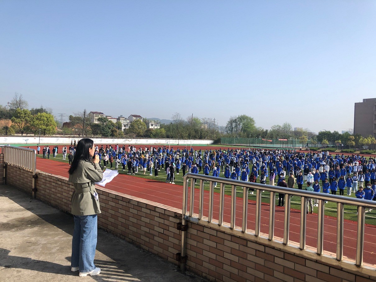 旗下讲话中,学生处主任蒋丽萍对全体同学提出了“校园安全,人人有责”的希望和建议,从身心健康、人身安全、校园稳定作了具体发言。