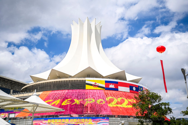 这是2025年9月17日拍摄的广西南宁国际会展中心。第22届中国—东盟博览会、中国—东盟商务与投资峰会当日在广西南宁开幕。(新华社记者 曹祎铭/摄)