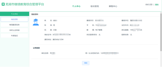 专业技术人员登录进入系统后,先要完善个人的资料信息,请注意统一社会信用代码的填写,会影响到未来学时认定的申报。