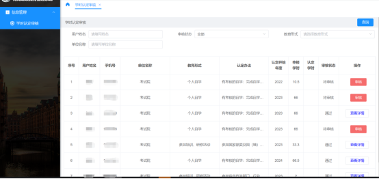 单位用户主要是登录系统,对本单位人员进行学时认定审核。