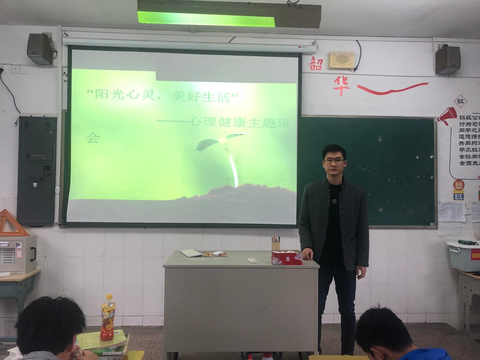 班会课上班主任们精心准备,认真组织,围绕心理健康教育开展了丰富多彩的主题教育活动。班主任讲解青春期心理及生理的变化常识,结合生动的案例引导学生合理调节自身情绪,让学生自我反思;在“旗下讲话”活动中,学生处副主任强光佐从认识自我、调节情绪、善于交往等方面分析学生在学习和生活上可能面对的心理问题,鼓励学生们健康快乐的成长。