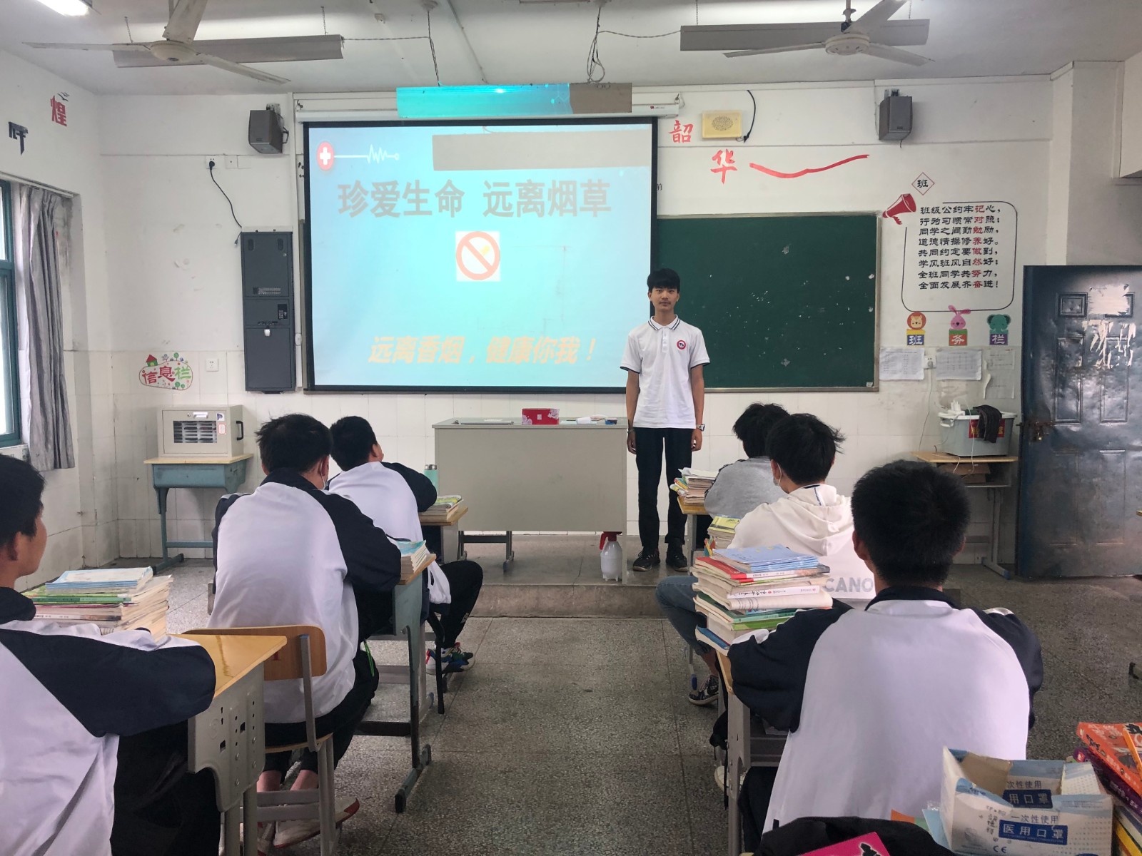 班会课上,班主任们例举大量的事例和详实的数据,向同学们阐释了吸烟的危害。并且向班级同学发出倡议:崇尚健康,远离烟草。同学们也纷纷表示,养成良好健康的生活方式和习惯,为创造无烟学习和生活环境而共同努力。