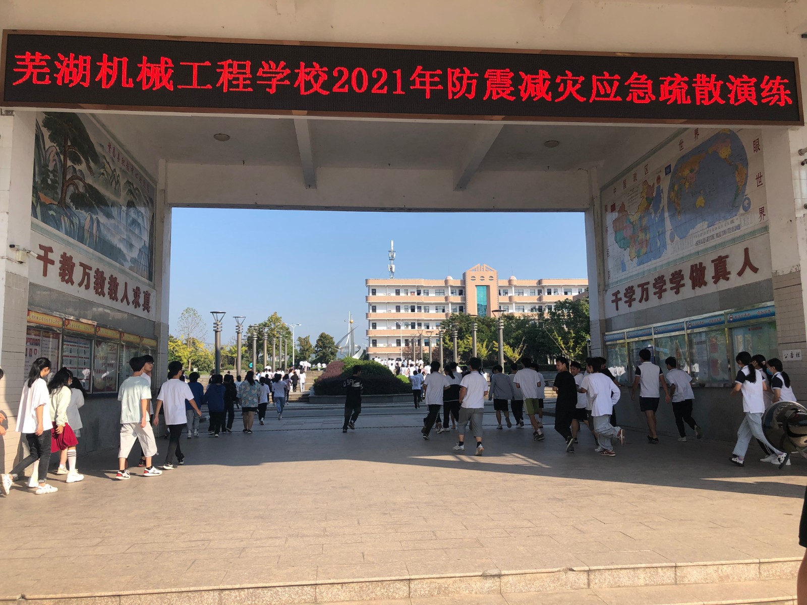 2021年9月18日是“九一八事变”90周年纪念日,为缅怀历史,勿忘国耻,培养中职生爱国主义精神,提升突发事件应急能力。今天,芜湖机械工程学校组织开展爱国主义教育暨防震减灾应急疏散演练活动。