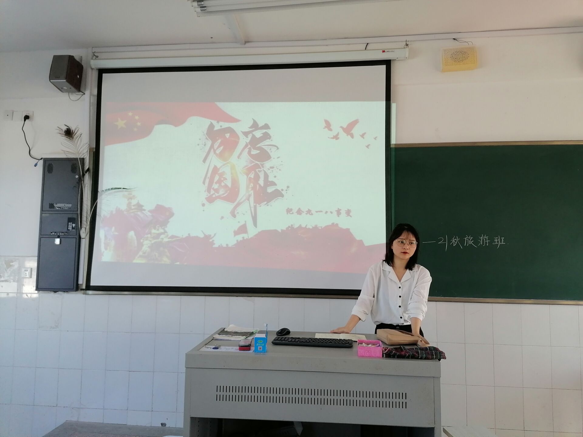 早晨第一节主题班会课上。各班主任结合“勿忘历史,缅怀九一八事变”主题,精心准备,有图片、文字、视频等多媒体材料,详细讲述那一历史时刻到新时代中国时期中牺牲的烈士和作出贡献的伟人们的故事和情怀。同时班主任们也分析如遇到地震等紧急突发情况,学生如何采取有效防护措施进行逃生,在避灾过程中应掌握哪些安全常识等。